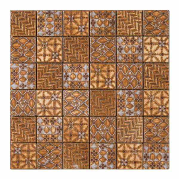 幾何学模様をパッチワークのように組み合わせた、正方形のモザイクタイルです。