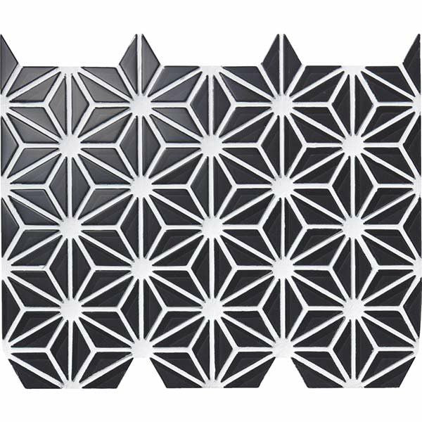 日本伝統柄の「麻の葉」をガラスで再現したモザイクタイルです。6mm厚ガラスが織りなす奥行きのある輝きが魅力です。