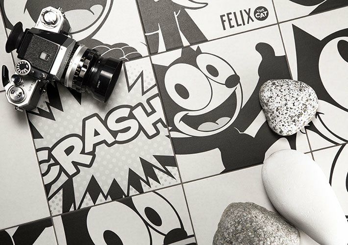 懐かしいガムのイラストでもお馴染み、黒猫をモチーフにしたアメリカのアニメーション「Felix the Cat」のキャラクター「フィリックス」の200角タイルが登場。
