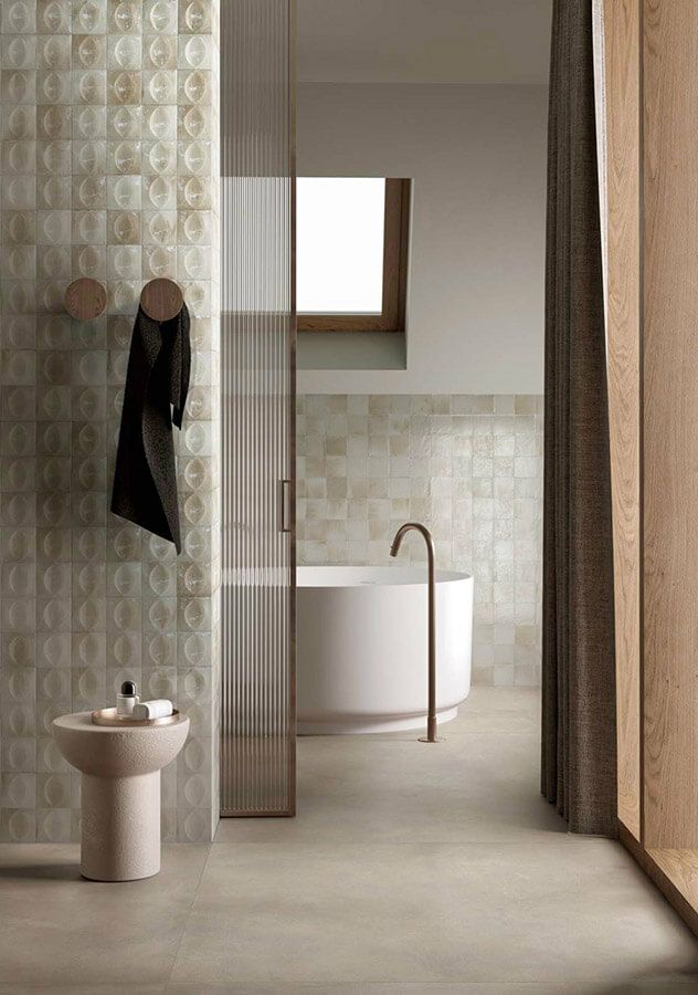 手作りならではの素材感と豊かな色むらを繊細に表現しました。ターコイズ色をはじめとしたニュアンスのある5色のカラーバリエーションと、どこか懐かしさを感じさせるやわらかな造形のレリーフタイルが特徴的なシリーズです。