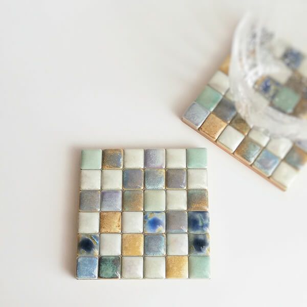 淡いブラウンのタイルを組み合わせたコースターです。