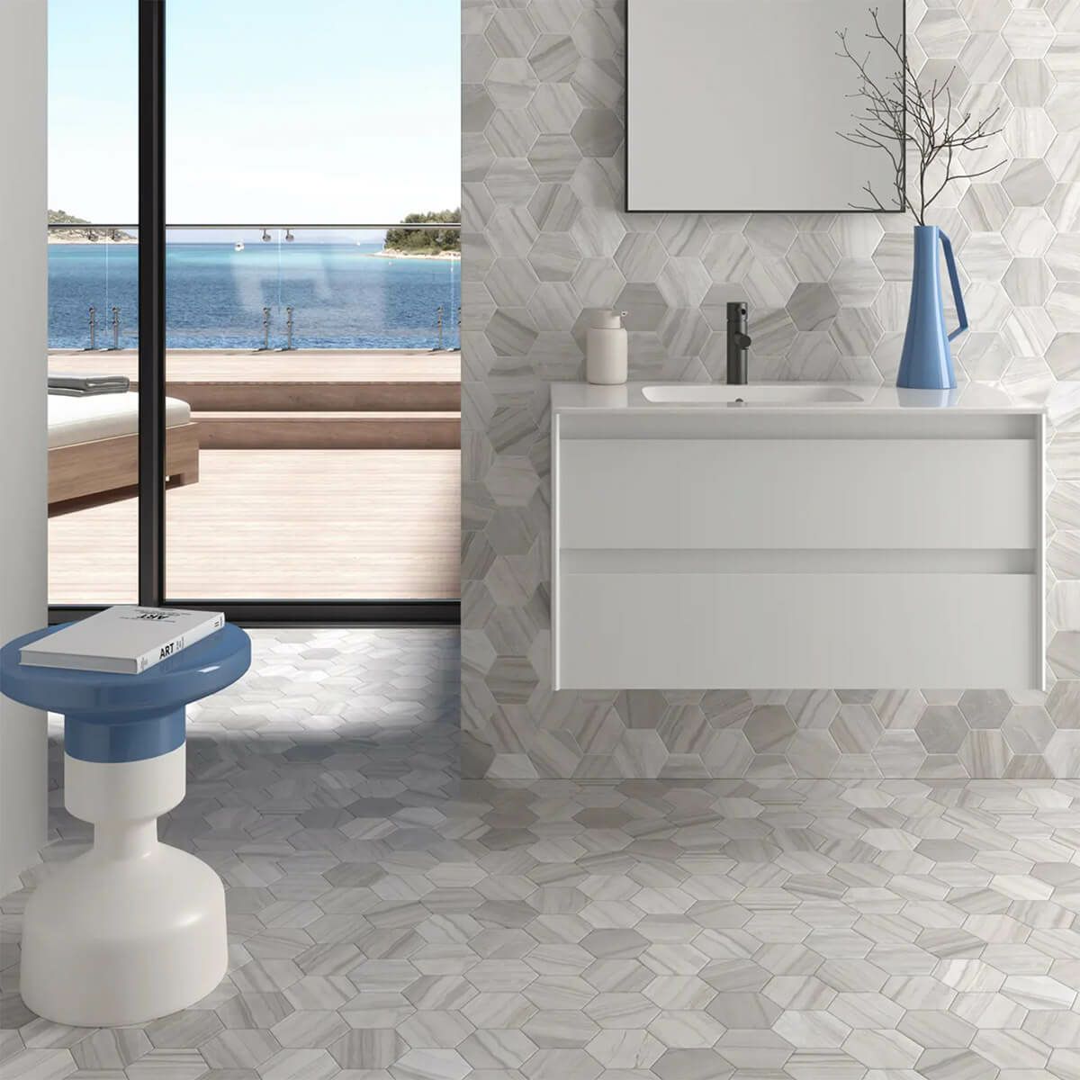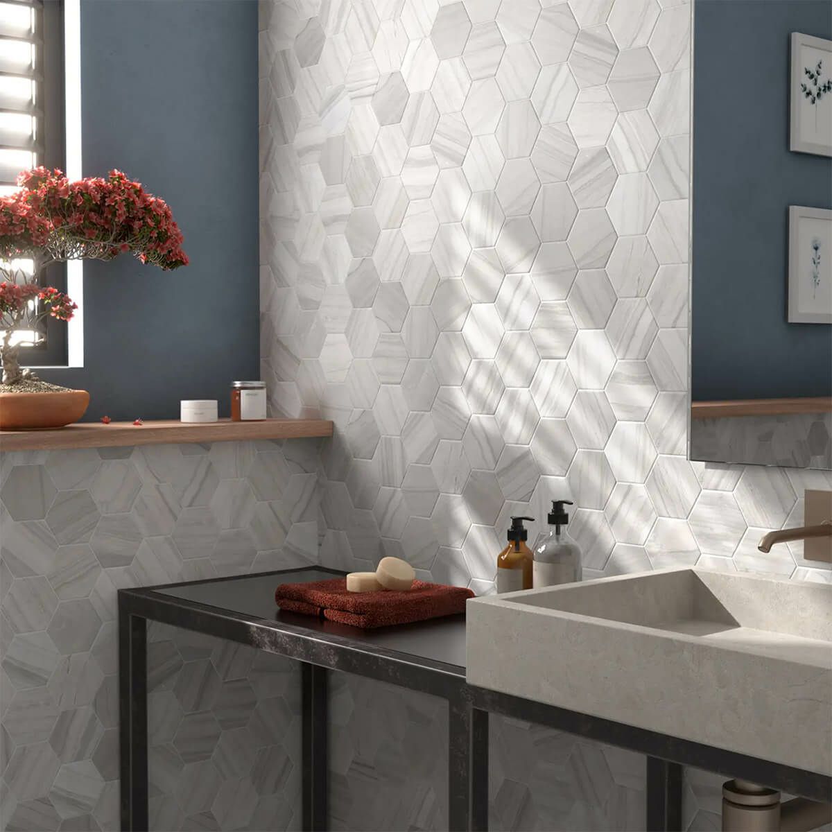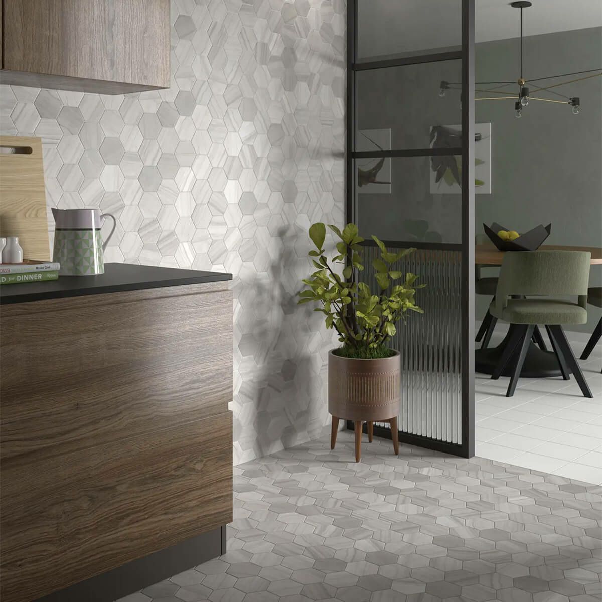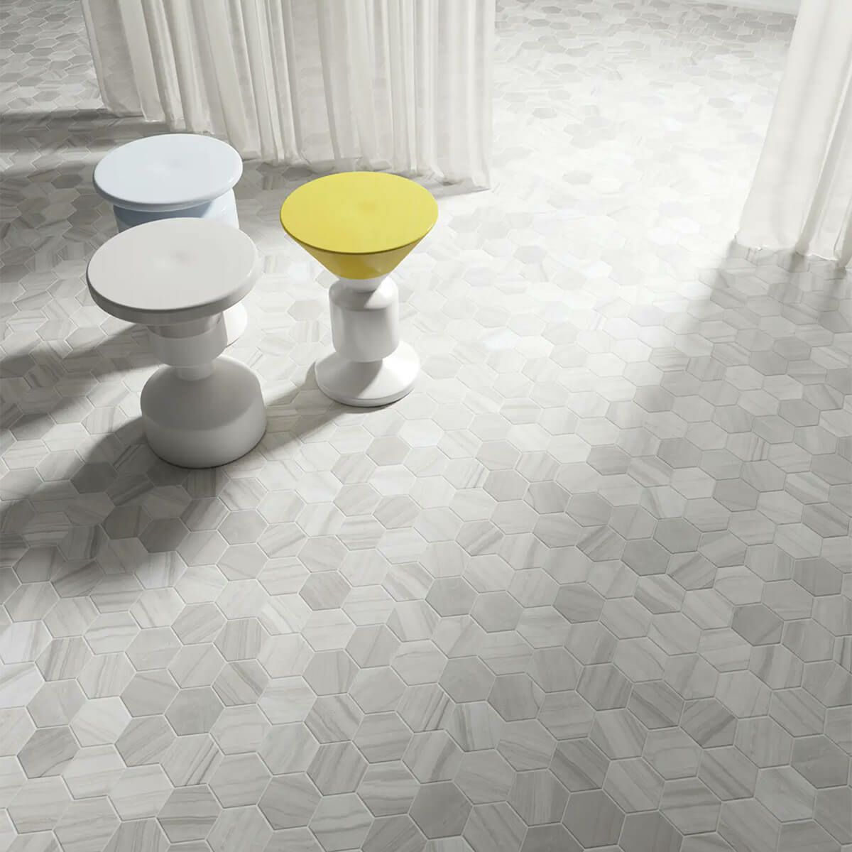 古代ギリシャ語で “石” を意味する「リトス」。 美しい大理石模様を、いまだ人気が衰えない六角形の形状で表現しています。 古典的な彫刻美術の世界を彷彿とさせる柔らかなマット仕上げの風合いは、床・壁どちらにも映える、時代を超越したエレガントなコレクションです。