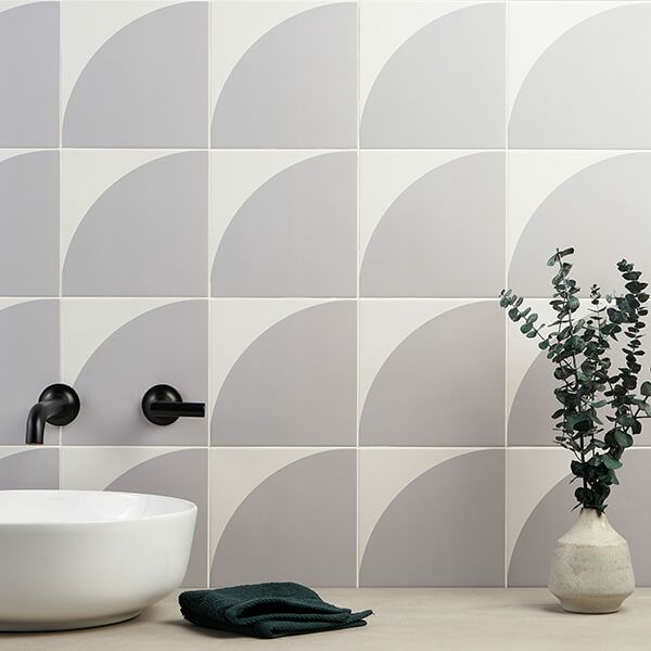 まるで虹の延長線上にあるかのような鮮やかな色合いと円弧模様が特徴の200角タイル。