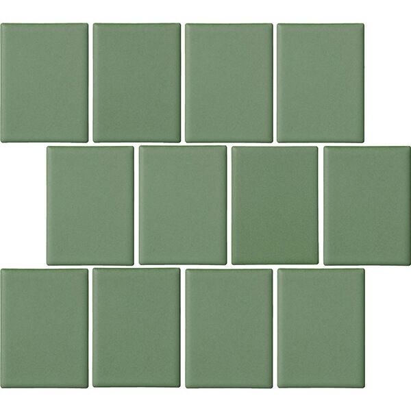 焼物らしさを大切にした落ち着いた色に100×75mmというユニークな形状、角の丸みが特徴。日本製らしい繊細なデザインタイルです。