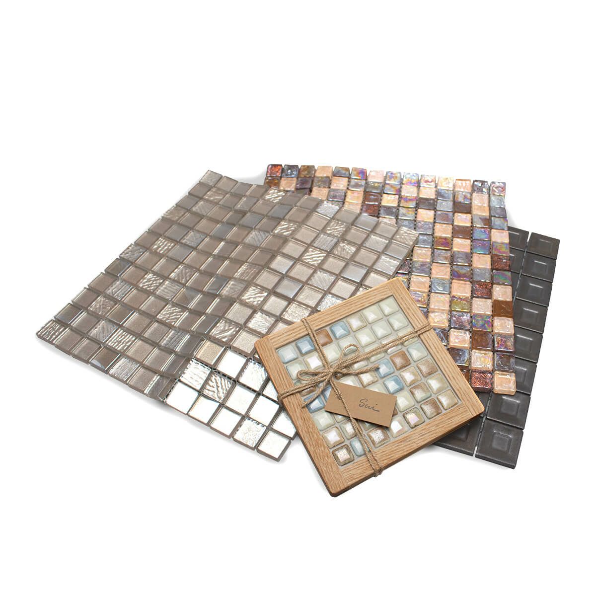 当ショップで販売中の、コースターやトレー、鍋敷きなどのタイル雑貨1点に、人気のモザイクタイル3種をプラス。