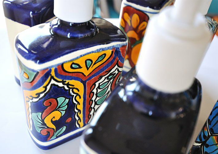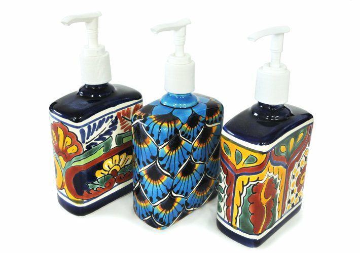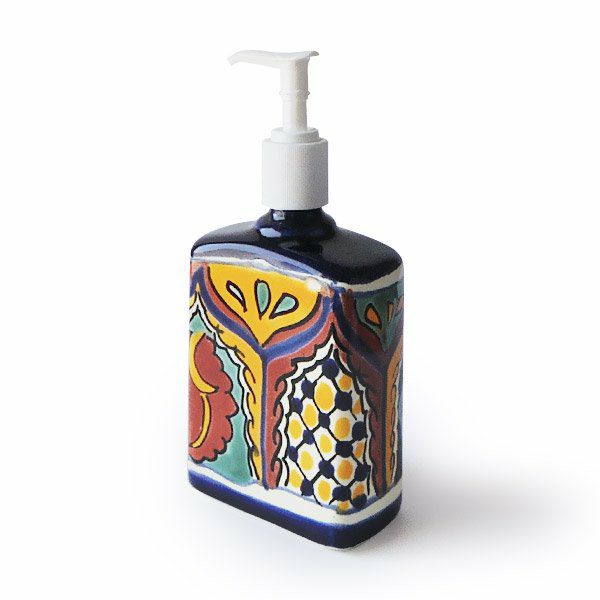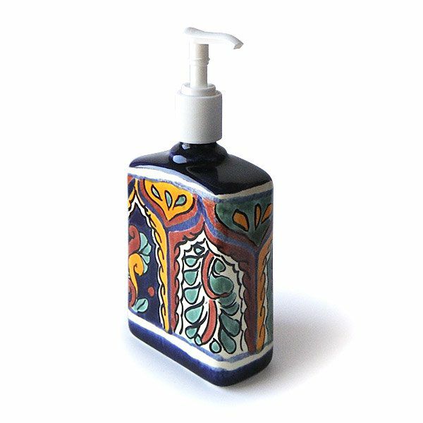 ラテンのエネルギーと素朴な可愛らしさ溢れる、メキシコ特産・タラベラ焼のソープディスペンサーです。