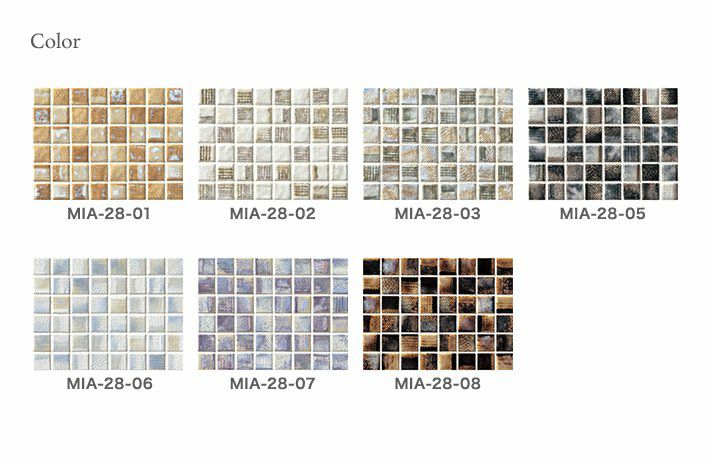 マーブル模様の毛糸を編み込んだような色合いと、布のような柔らかな風合いを併せ持つタイルです。