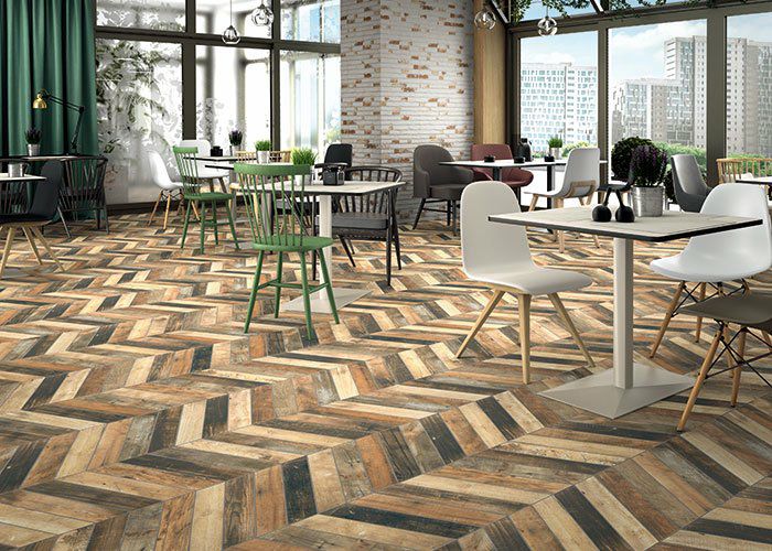色幅のある、ひし形の木目調タイル「Diamond Pallet - ダイアモンドパレット」。