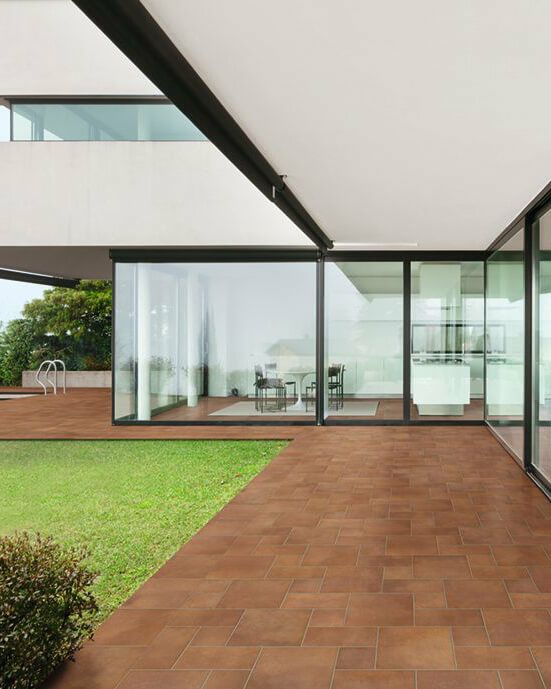 伝統的な押出し成形に最新技術を組み合わせた屋外床向けの機能タイル。テラコッタのウエットな質感はそのまま、強度と耐すべり性能を確保しました。
