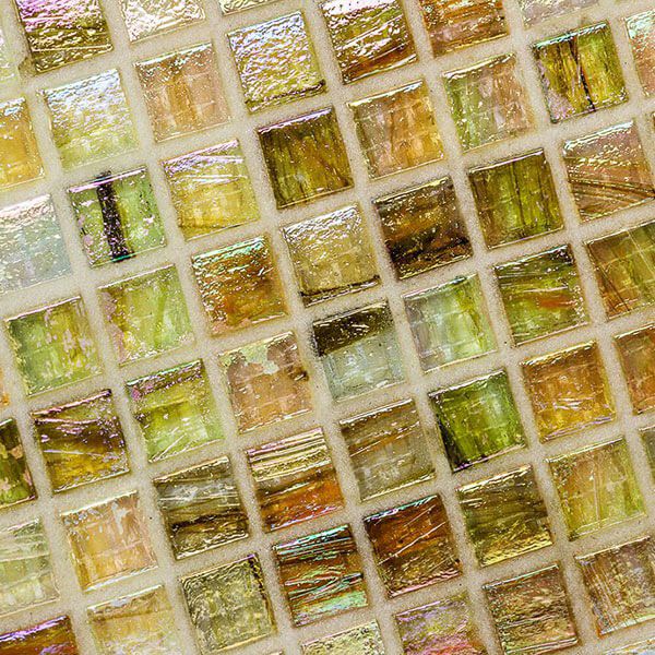 ステンドグラスのようなガラスタイル。光の反射を受けてより美しく輝きます。