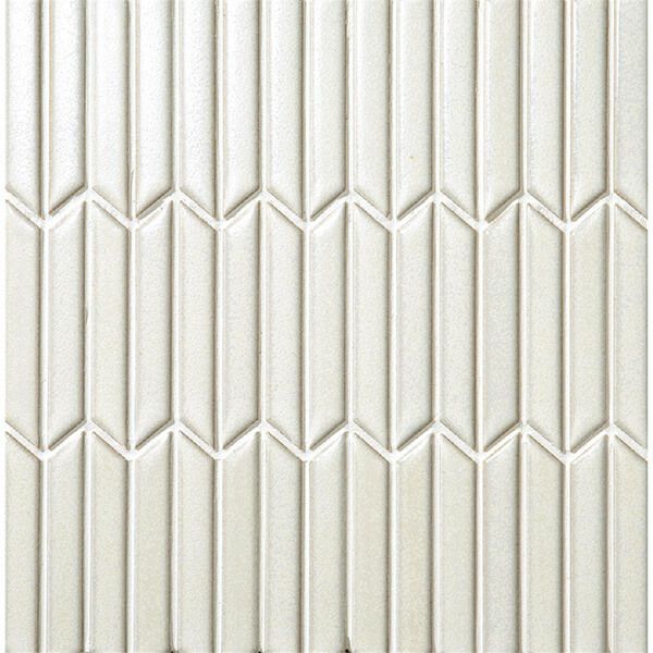 矢筈の形をモチーフにしたユニークな形状のモザイクタイルを、モダンな色調で表現しました。