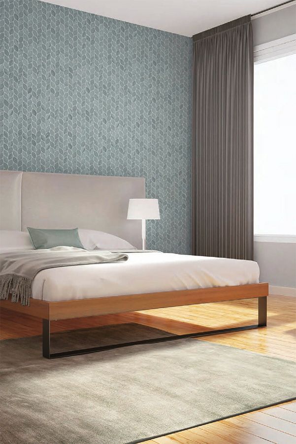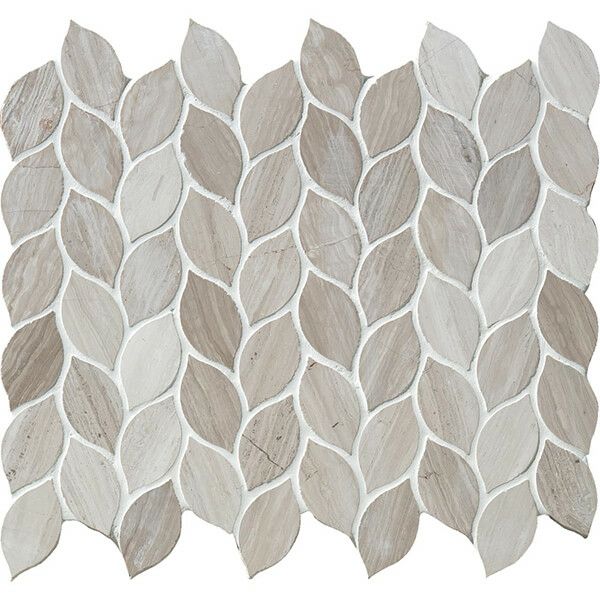 落ち着いた色調のライムストーンをウォータージェットでユニークな葉形に切り抜いた、上品でアーティスティックなモザイクです。