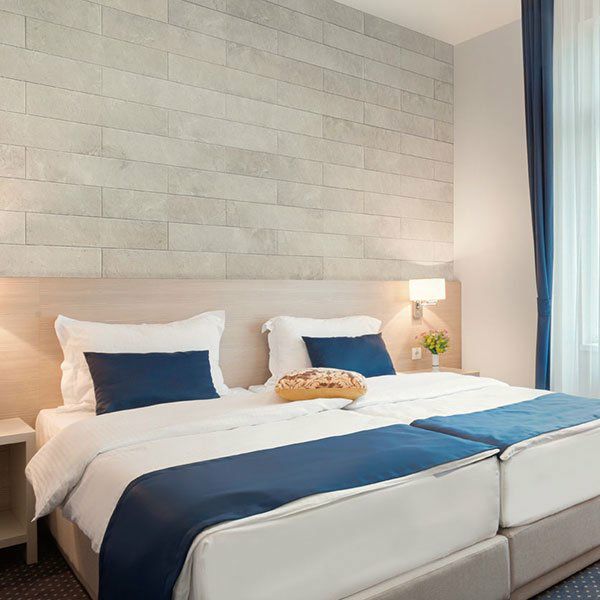 暖かみのある石積みの風合いが、ホテルの居室などくつろぎの空間を上質に演出します。