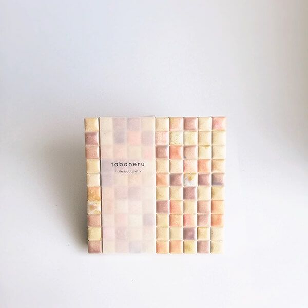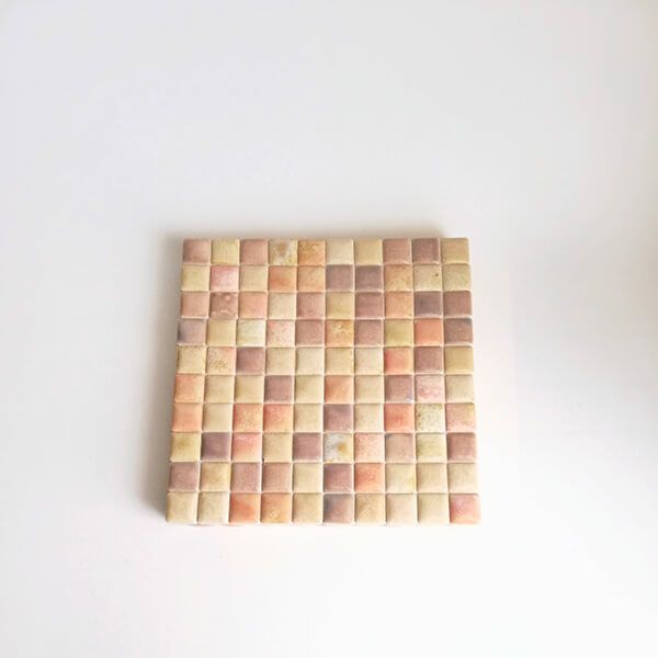 ピンクやパープルのタイルから、 淡い色味のものだけを一粒一粒選び、 タイルの間はピンクの目地で繋ぎました。