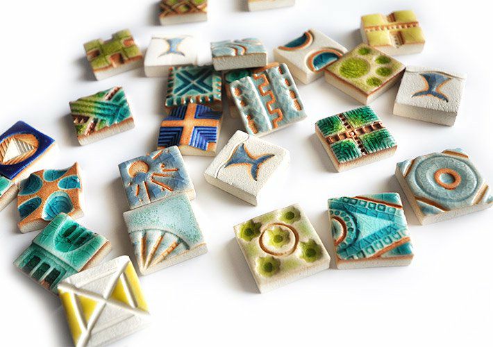 遺跡や街並みをモチーフとした作品を多く手がける彼女のタイルは、宝箱に大切にしまっておきたくなるような、どこかエキゾチックな佇まい。タイルとしてはもちろん、箸置きやアクセサリーパーツとしての使用もおすすめです。