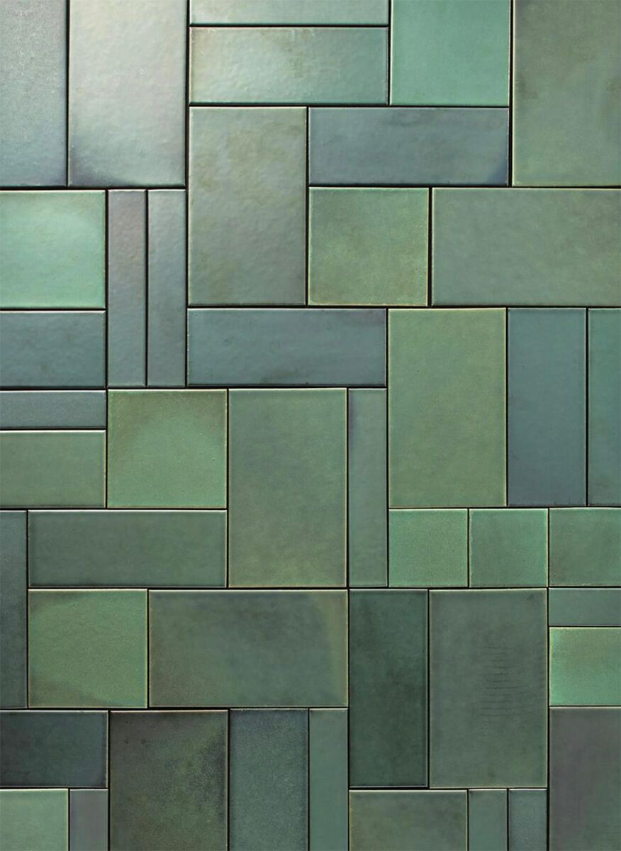 茶人・古田織部が愛した深みのある青緑色を、銅釉薬の酸化焼成技法によって再現したタイルです。この独特のコッパーグリーンは、まるで時を経て落ち着いた美しさを醸し出すかのような深い味わいが特徴。酸化焼成の効果で生まれる青緑の陰影が、どの角度からも異なる表情を見せ、まるで織部が追求した美の哲学を感じさせるかのようです。伝統を継承しながらもモダンな空間に溶け込む一枚として、和と現代の調和を味わっていただけます。