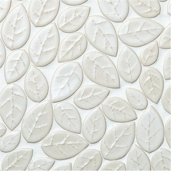 内装壁タイル「クラベリーナ」。葉と花のモザイクタイル。優しいパステルトーンの色合いがインテリアのアクセントになります。