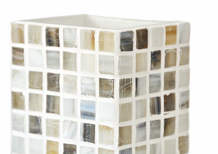 優しい手触りとブラウンミックスが上品な、ガラスモザイクタイルを使ったフラワーベースです。