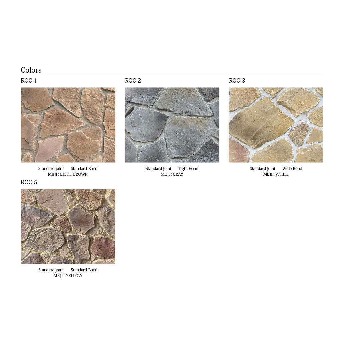 CAN’STONE「ラウンドキャニオン(ROC)」は、アメリカ西部の砂岩に囲まれた渓谷、大自然の力強さをイメージして乱形形状に再現した石積み調の壁材です。