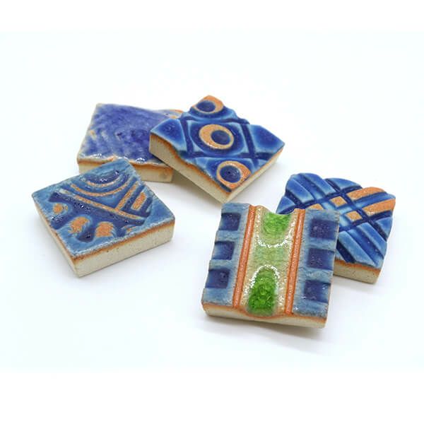 遺跡や街並みをモチーフとした作品を多く手がける彼女のタイルは、宝箱に大切にしまっておきたくなるような、どこかエキゾチックな佇まい。タイルとしてはもちろん、箸置きやアクセサリーパーツとしての使用もおすすめです。