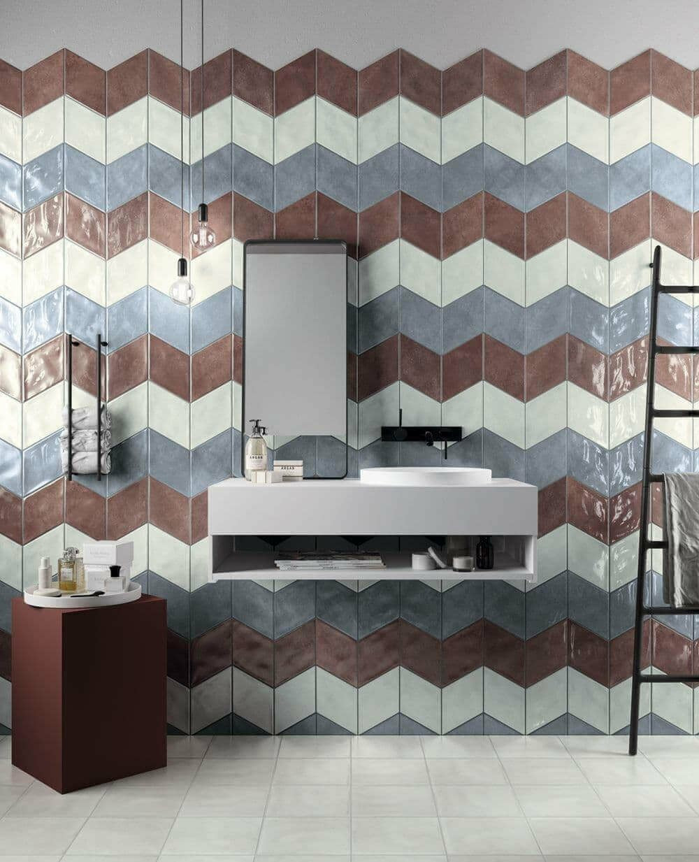 カタチとしての美しさが際立つダイヤ形状は、色とパターンの組み合わせでさまざまな幾何学模様に展開が可能。優しい光沢をもつ釉薬の表情とトーンを抑えたパステルカラーで、柔らかく包み込むような印象を創り出します。