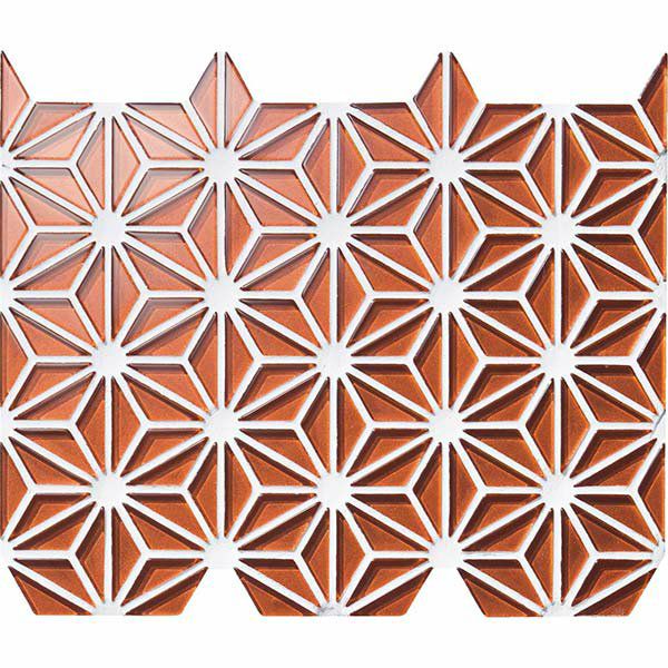 日本伝統柄の「麻の葉」をガラスで再現したモザイクタイルです。6mm厚ガラスが織りなす奥行きのある輝きが魅力です。