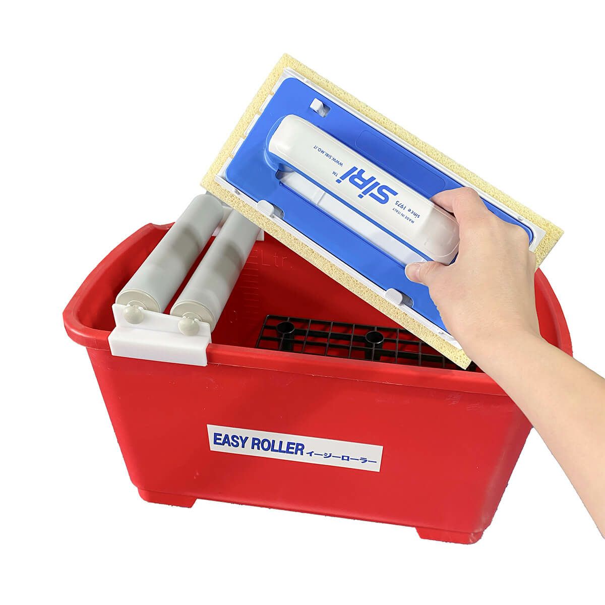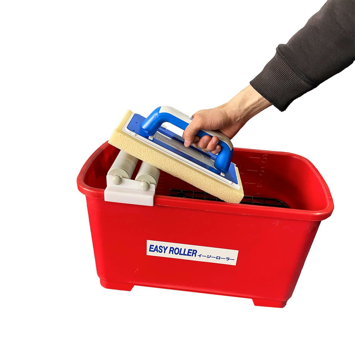 目地拭き取りの効率アップを叶える商品です。バケツ・スポンジの水を絞るローラー・スポンジ乾燥用の網棚が一体になっています。とっては握りやすく作業製に優れた太さで、専用スポンジは吸水性と弾力のバランス型で美しい拭き取りが可能です。取り外し可能なキャスター付きで水を入れたまま運びやすいビッグと狭所作業にも持ち運びにも最適なミニの2タイプございます。