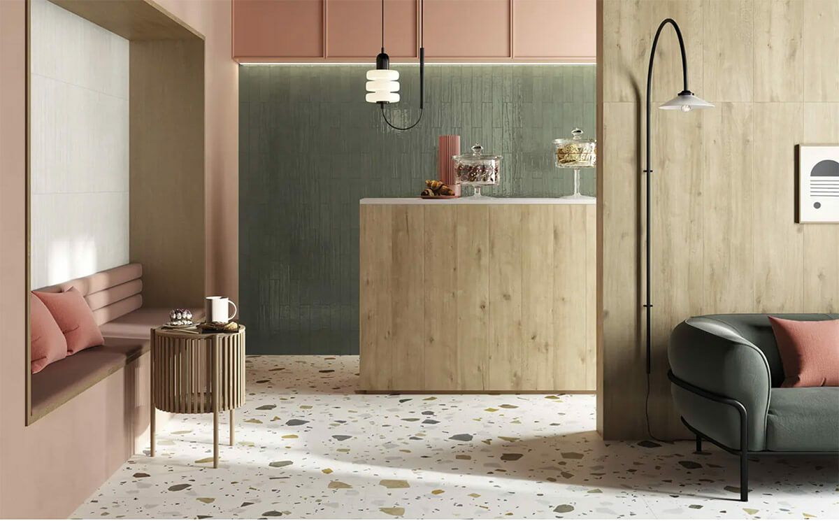 コンクリート・石材・ファブリックなど異素材のテクスチュアを融合させ、清潔感のあるブライト面状に仕上げたコレクションです。 大きめの400×75mmの形状が、大きな面にすっきりした印象を与え、汎用性のあるカラーで、様々なテイストのコーディネートを叶えます。