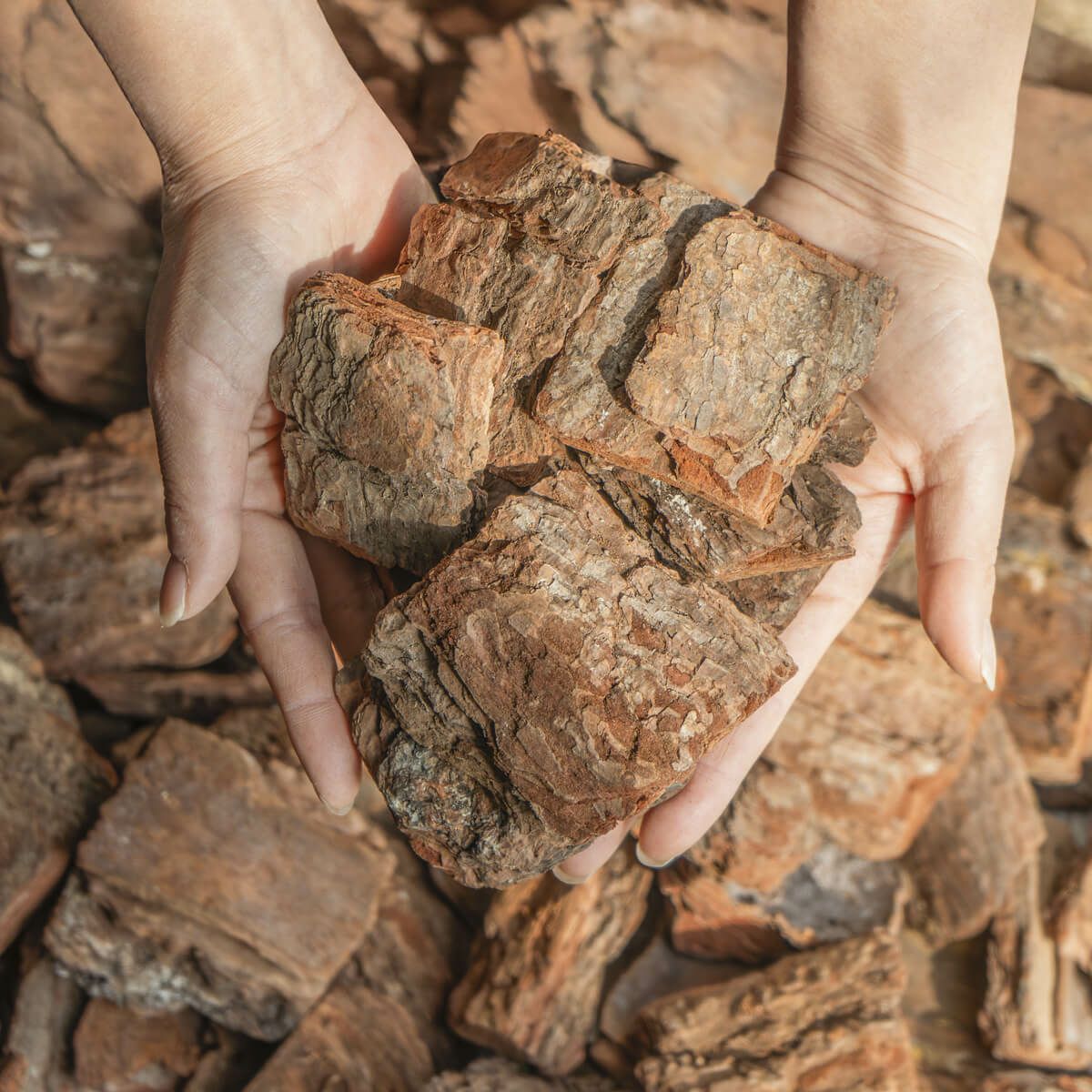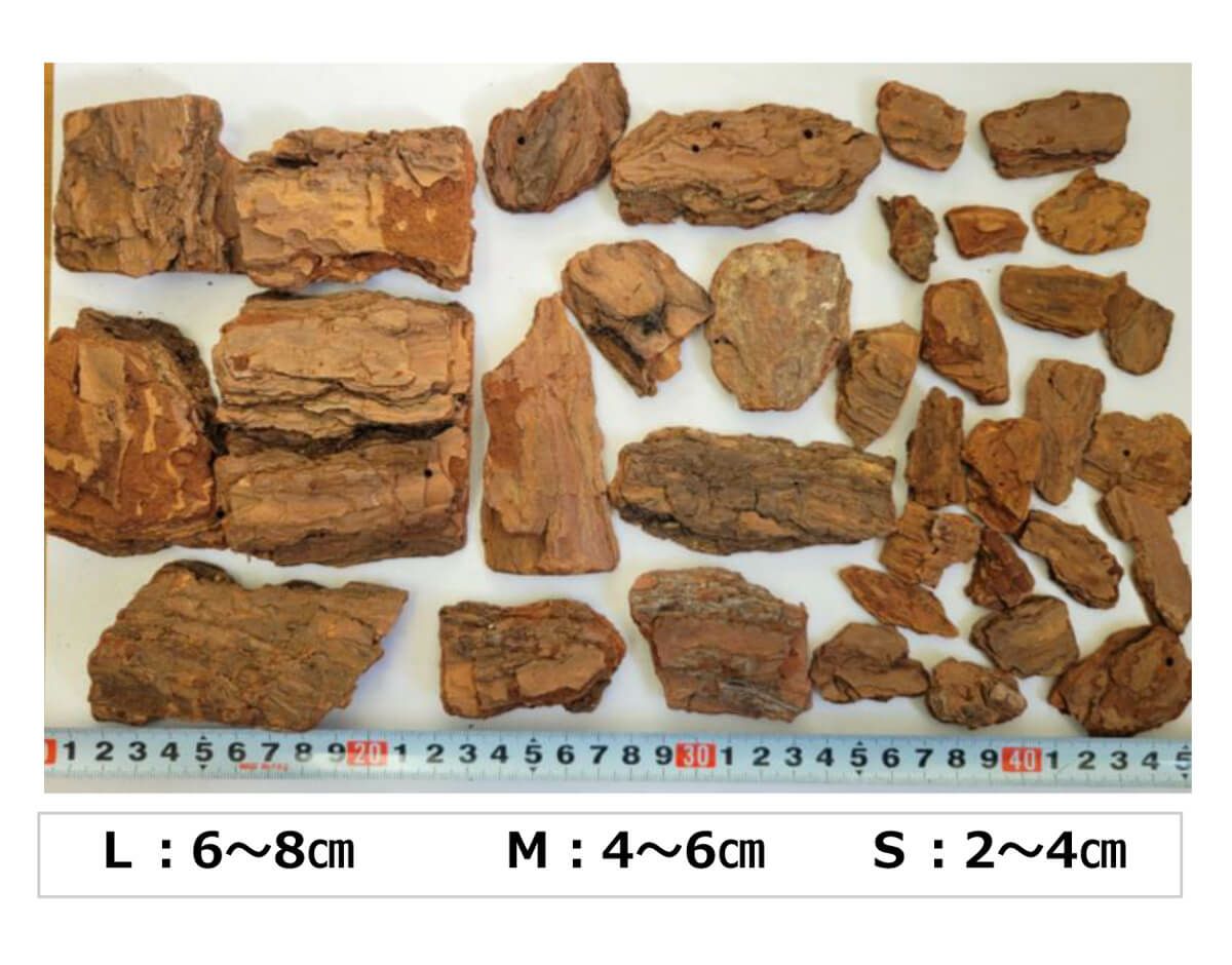 自然な風合いを活かした天然のバークです。鉢・プランター・フラワーポットやバラのマルチング・花壇などの土かくしやグランドカバーに緑や花を引き立てるバークです。又ショーウインドウの装飾、商品展示用の天然素材として近年注目を集めています。松の香りとゴシックオークの美しい色彩が独特のディスプレー効果をもたらします。雑草防止・乾燥を防ぎ、水はね防止にも効果があります。