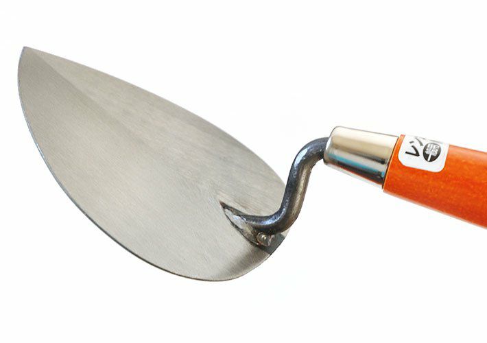 セメント等のコーナー仕上、セメント・土すくいに最適な桃型のレンガこて(2番)。